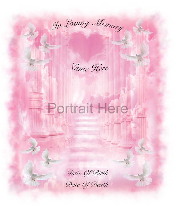 Send us what you want customized, typically it is a portrait, date of birth, date of death, loved ones name, and sometimes a positive quote.